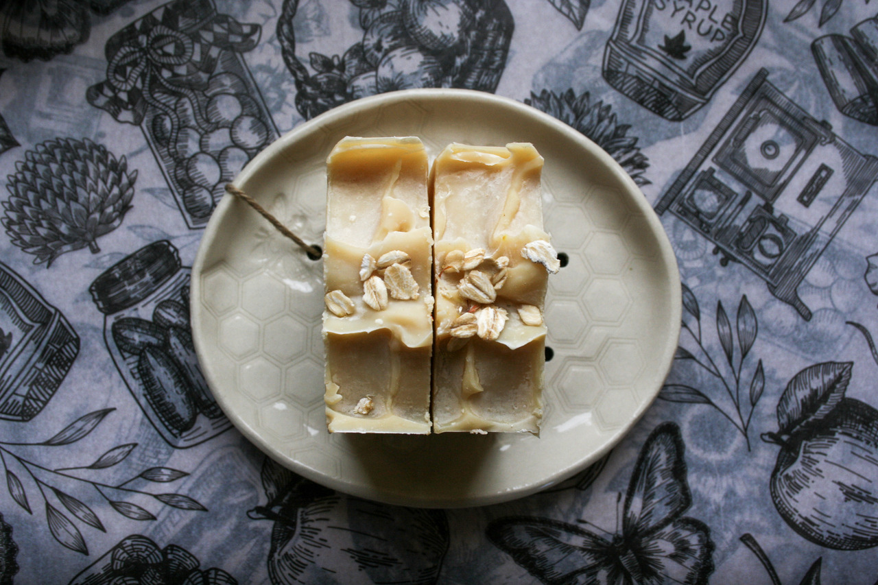Goat + Oat is a beautiful, rich bar of soap. It smells warm with delicate hints of lavender and vanilla. The goat milk and oat combination makes it a perfect bar for sensitive skins.