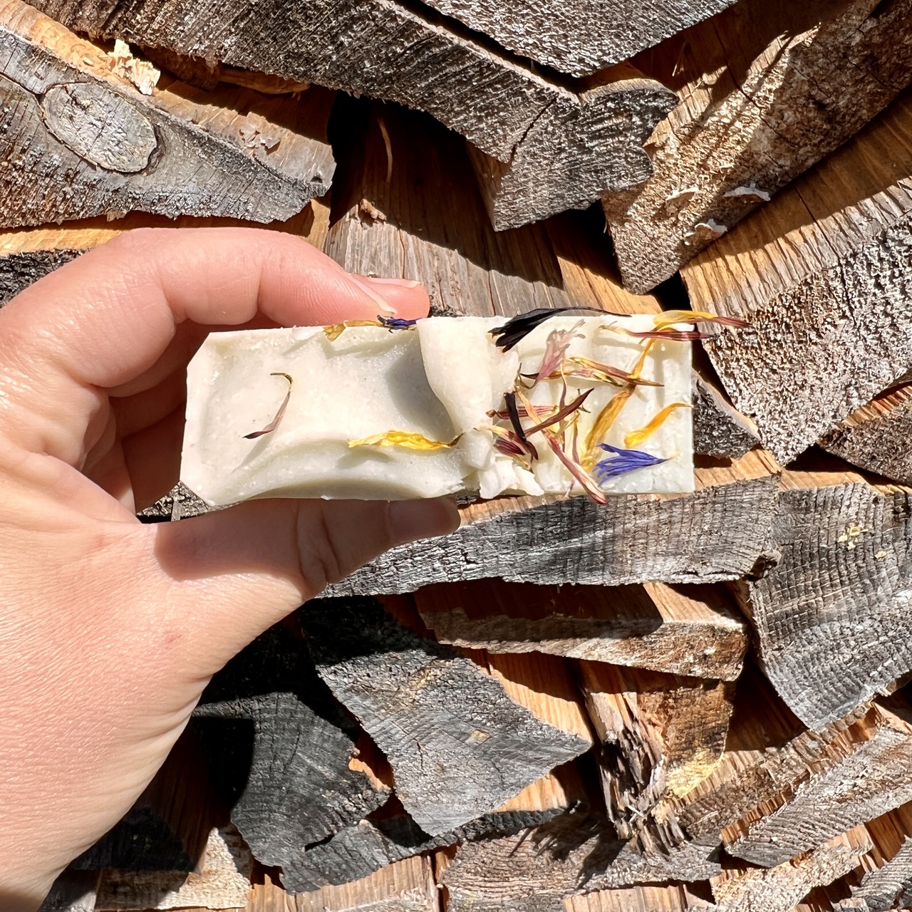 The extra virgin organic olive oil used in this soap has been cold-infused with homegrown calendula, which is often used for their skin healing properties, to soothe irritated skin.